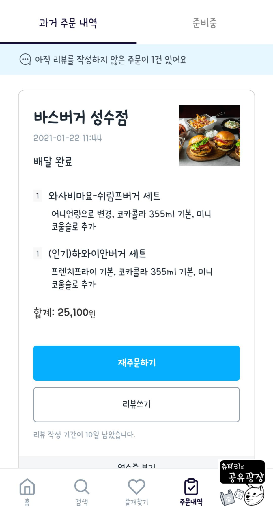 재택근무 중 작은 행복인 점심시간이다. 다이어트는 잠시 중단. 쿠팡잇츠에서 바스버거를 주문했다. 원래는 배달의 민족을 이용했었는데 요즘들어 배달이 너무 늦어져서 쿠팡잇츠로 갈아탔다. 쿠팡잇츠가 확실히 빠른듯!